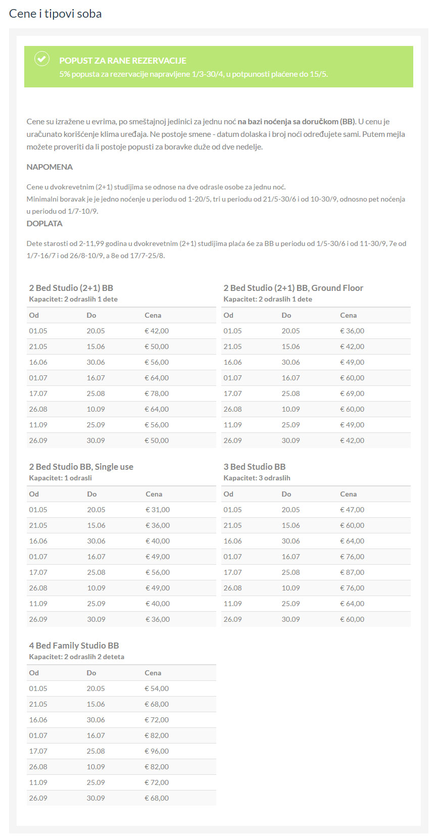 On the ground floor of the building there are double studios with a veranda and they are an economical choice because they have a lower price.