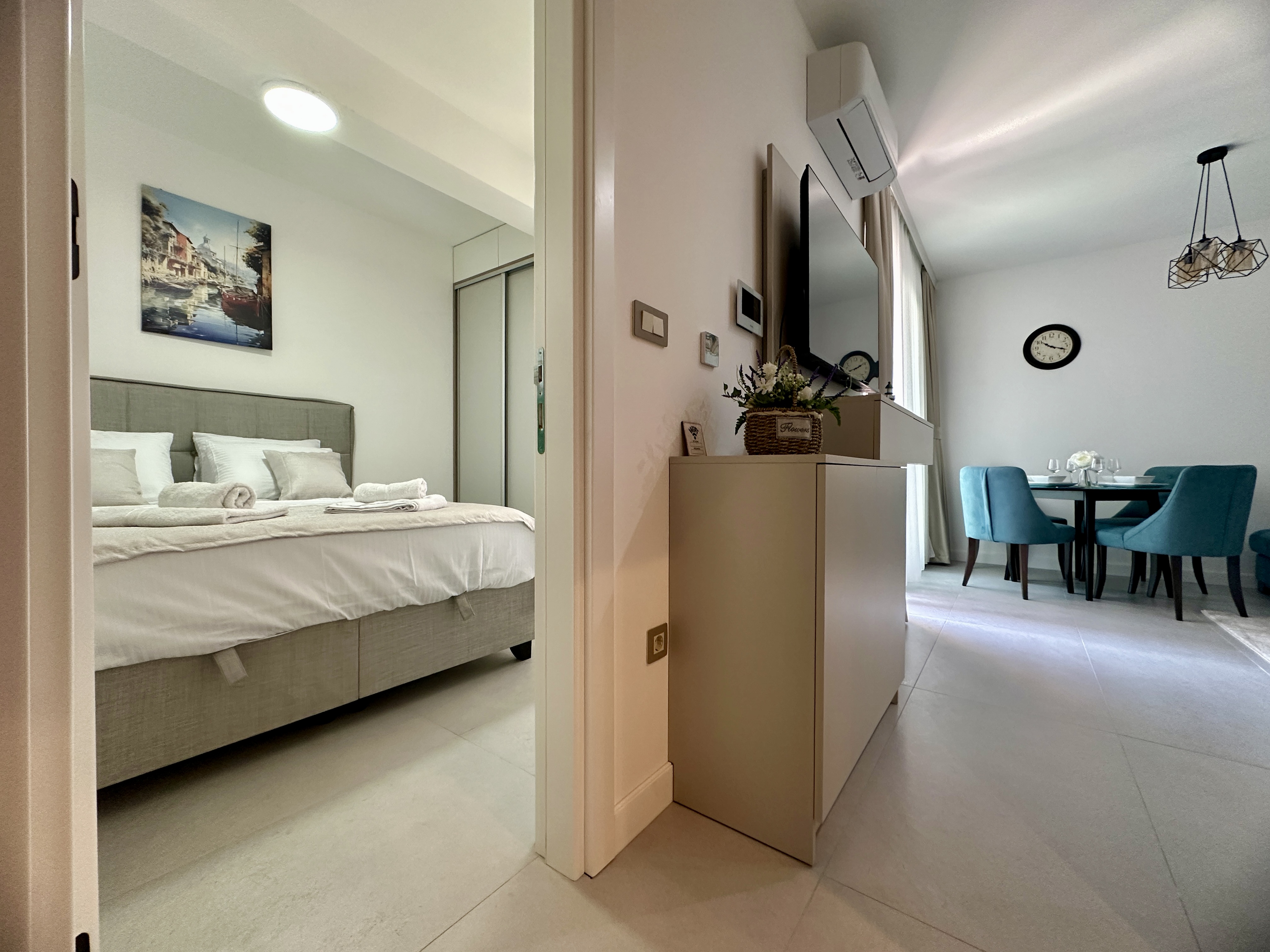Se alquila lujoso y cómodo apartamento de una habitación de 42 m² en un edificio nuevo con ascensor, a pocos pasos de la playa. El apartamento se encuentra en la segunda planta y cuenta con un balcón con una hermosa vista al mar, ideal para relajarse. Descripción: - Superficie: 42 m² - Distribuci...