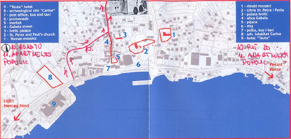 Los mosaicos romanos son de gran valor en todo el conjunto de la creación romana.Se descubre un complejo (de unos 790m2) y una villa romana con cinco habitaciones y una figura de Hipnos en un mosaico.La hipnosis tiene su origen en la mitología griega. En el arte romano, Hypnos fue representado en mosaicos y sarcófagos. La mitología dice que dos veces puso a dormir incluso a Zeus, quien quiso arrojarlo al mar, pero encontró protección en el regazo de la noche. La hipnosis se concibe como un joven apuesto, alado, que olvida con una rama, sumergido en las aguas del río. Los científicos afirman que esta es la única figura de mosaico de la deidad del sueño en el mundo Risan se encuentra en la parte más septentrional de la bahía de Kotor, entre las montañas Orjen (1895 m) y Lovćen (1749 m). La longitud de Risan Bay es de 4,5 km y el ancho es de 2,9 km. Esta zona ha sido incluida en la lista del Comité Internacional del Patrimonio Mundial de la UNESCO en la categoría de rango internacional más valorada.Risan pertenece a la zona de la corriente mediterránea. Según el análisis, el número de días con temperatura superior a 25°C es de 124 días y inferior a 0°C es de 4,3. Dos hermosas islas (escuelas) pertenecen a la bahía Risan delante de Perast, que son una verdadera decoración de la bahía de Kotor. La primera es la isla natural de San Jorge, que se menciona en (siglo XII). La leyenda de el desdichado amor de Katica y Ante de Perast, un oficial francés de la época de la ocupación francesa de Boka (1806-1813).