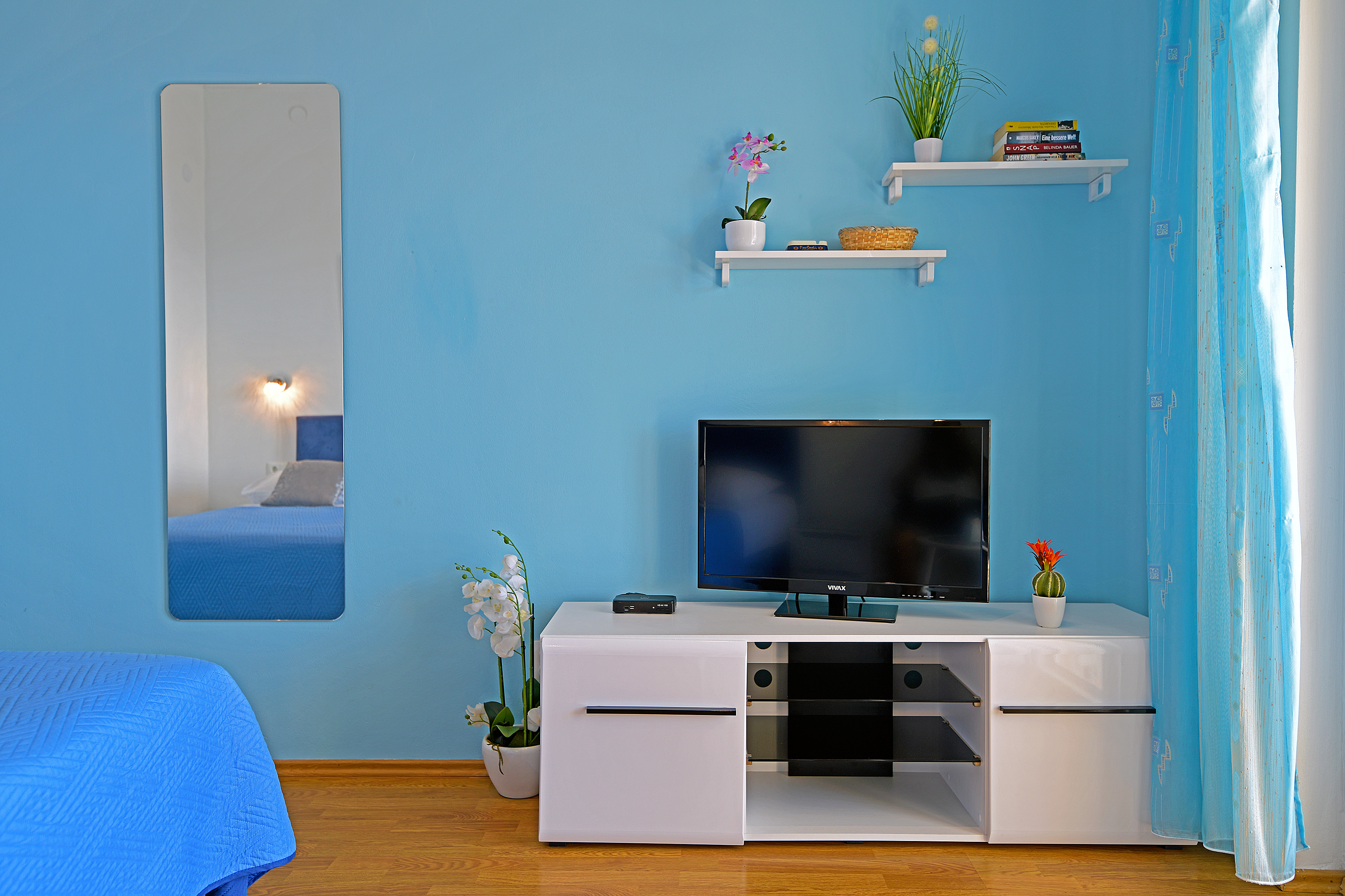 Το διαμέρισμα Orange βρίσκεται στο ισόγειο, με εμβαδόν 60 m2, και είναι κατάλληλο για 4 άτομα, ιδανικό για 2 ζευγάρια. Διαθέτει 2 υπνοδωμάτια, το καθένα με δικό του μπάνιο-τουαλέτα, κλιματισμό και δορυφορική τηλεόραση. Το μπροστινό δωμάτιο με διπλό κρεβάτι είναι προσανατολισμένο προς το νότο και ...