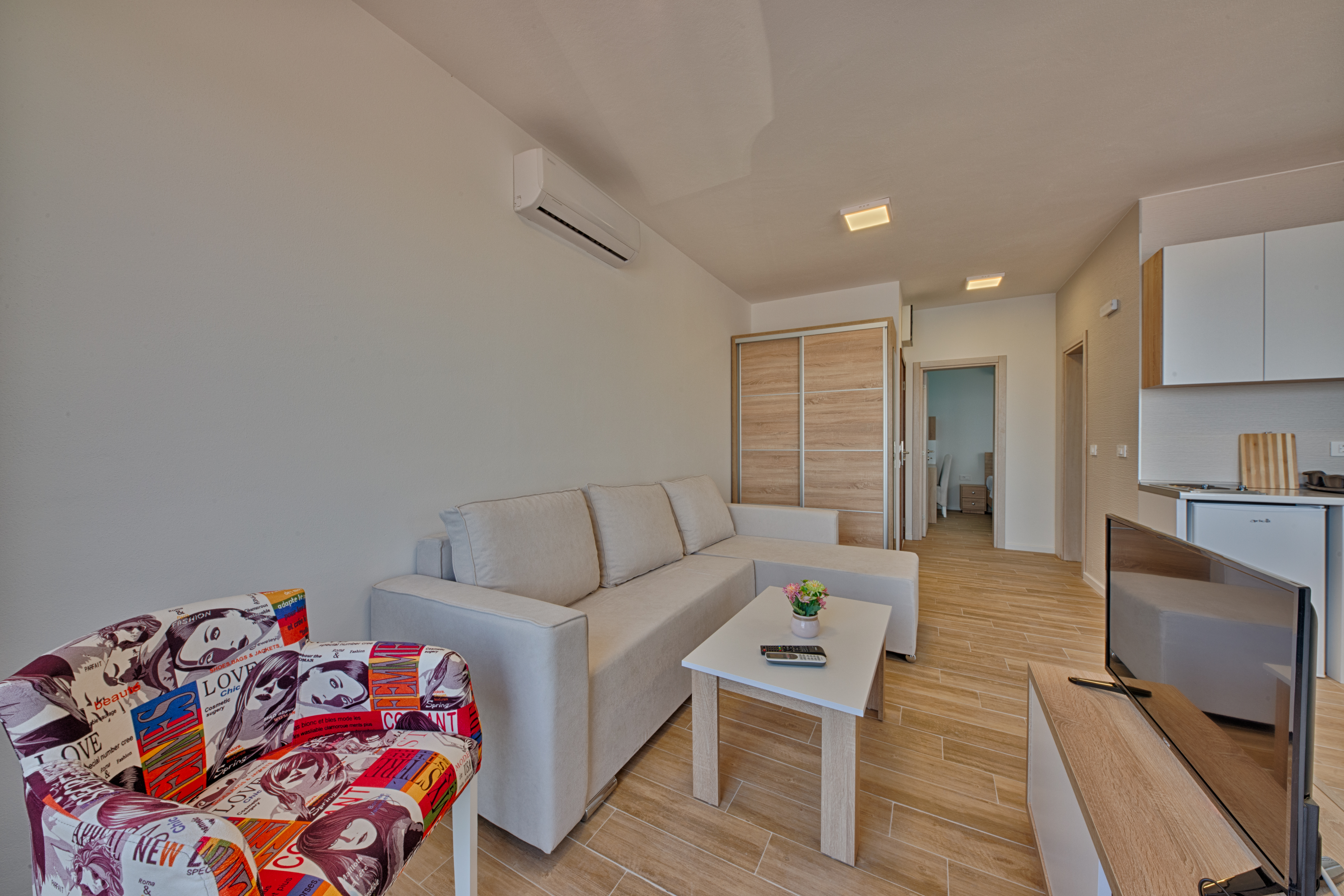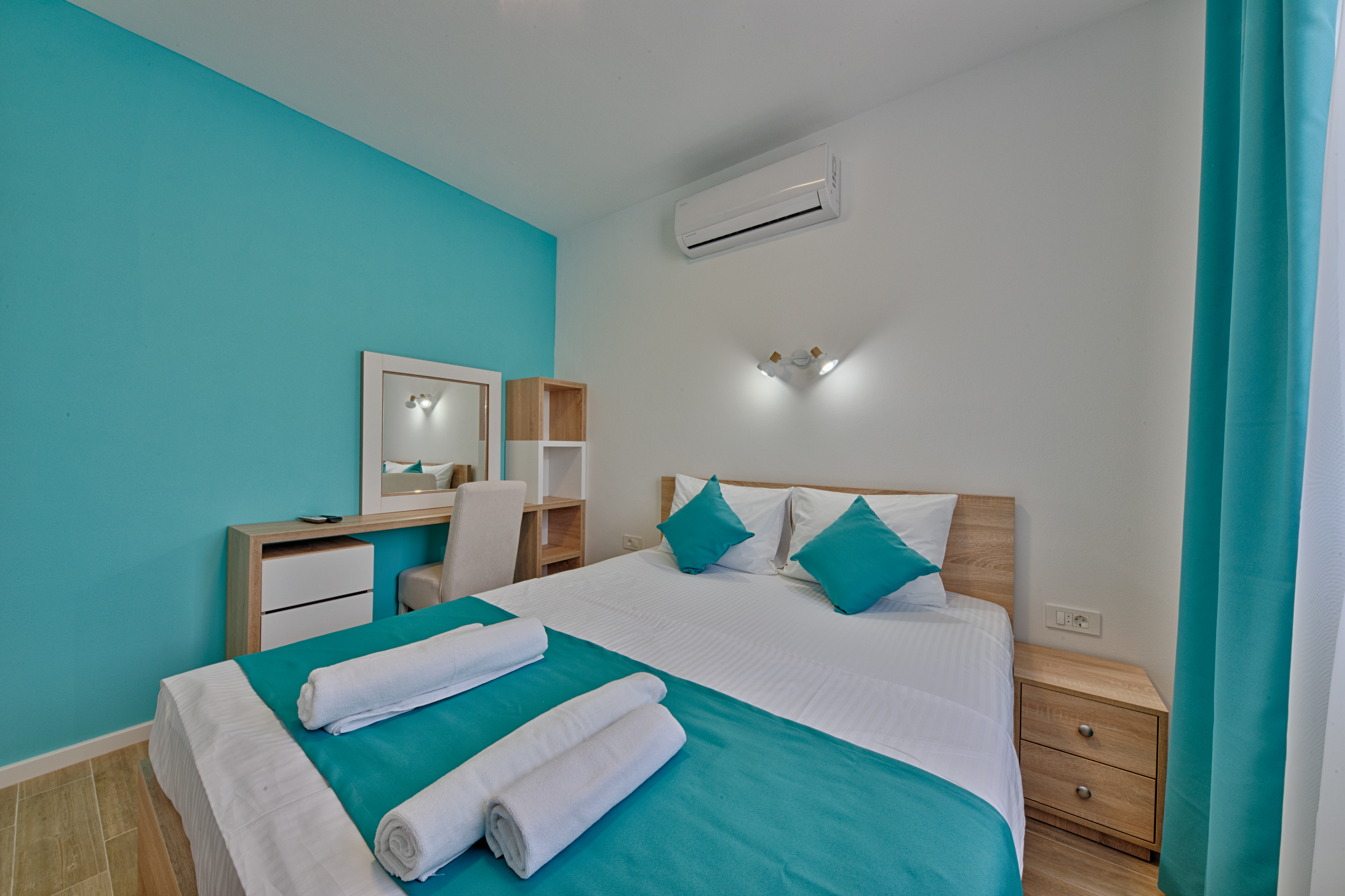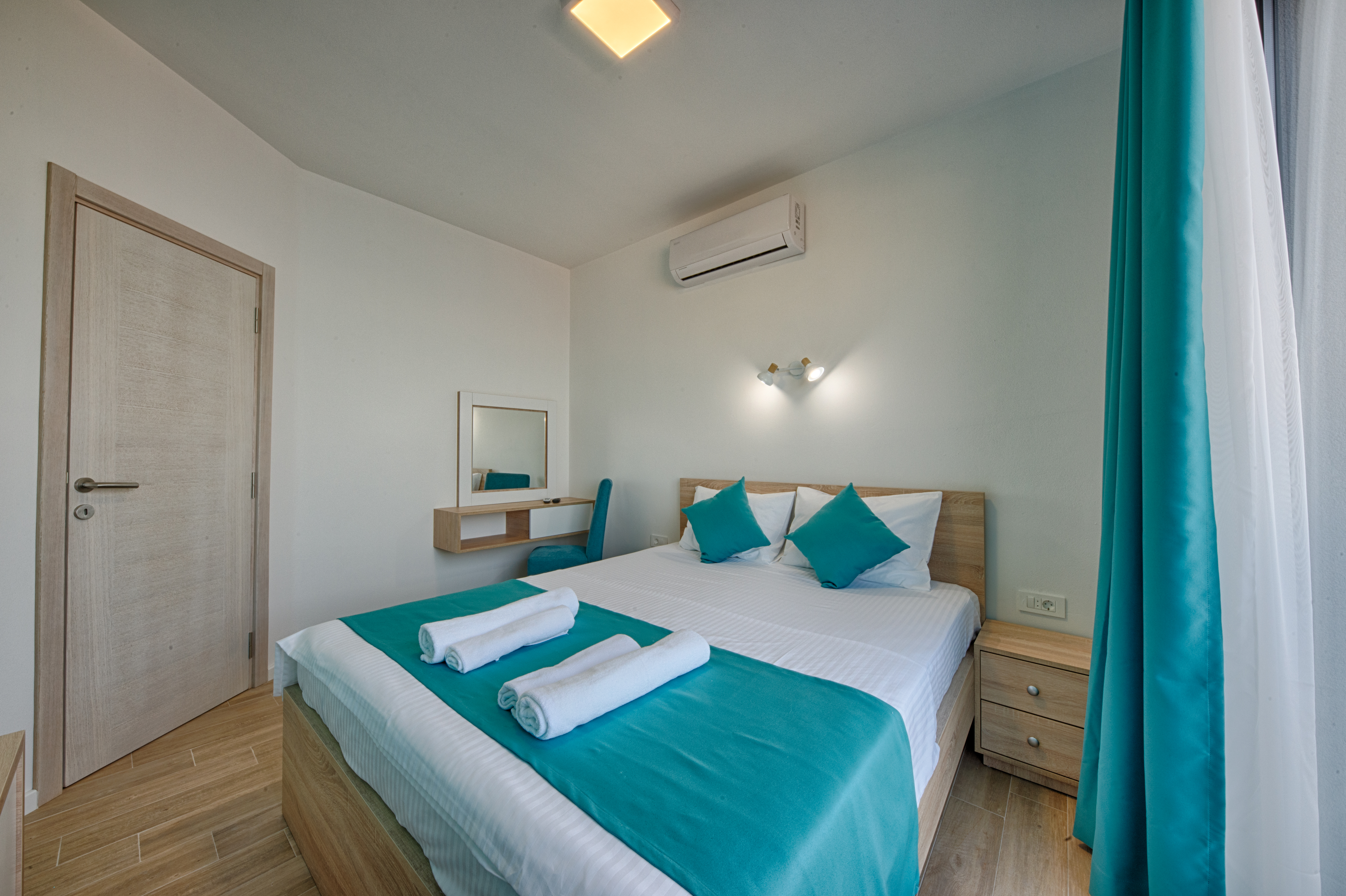 Η εγκατάσταση διαθέτει 8 ξεχωριστές μονάδες διαμονής. Προσφέρουμε 4 διαμερίσματα ενός υπνοδωματίου με θέα στη θάλασσα, δύο δωμάτια με διπλό κρεβάτι και ένα επιπλέον κρεβάτι και δύο δίκλινα δωμάτια με δύο μονά κρεβάτια. Τα δωμάτια και τα διαμερίσματα είναι κλιματιζόμενα, διαθέτουν Wi-Fi, καλωδιακή τηλεόραση. Τα διαμερίσματα διαθέτουν μικρή κουζίνα και τα δωμάτια διαθέτουν μίνι μπαρ. Δωρεάν πάρκινγκ στην αυλή.