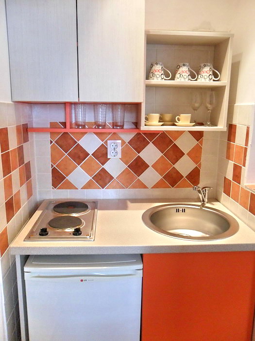 Leiligheter (studio) på 28 m2, to i første etasje, første og andre etasje. De skiller seg bare i fargene som dominerer i interiøret (grønn, gul og oransje). De inkluderer et soverom utstyrt med LCD-TV med kabeltilkobling, klimaanlegg, dobbeltseng og ekstra seng (Simco sovesofa), deretter et minik...