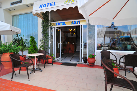 Po izkrcanju s trajekta, če greste peš, lahko v nekaj minutah pridete do hotela in se pomaknete levo proti centru mesta, policijski postaji, zabaviščnem parku, staremu pristanišču, mestni plaži. Če pa pridete na Thassos z avtomobilom, lahko parkirate na velikem javnem parkirišču levo od novega pristanišča, sto metrov od hotela, in nadaljujete peš do hotela, ali če želite parkirati bližje hotel na javnem parkirišču čez cesto, na nasprotni strani hotela (desno od izkrcanja trajekta), nato obidemo center in se spustimo do morja, saj je ulica, ki vodi od hotela do nove pristanišče je enosmerno in iz novega pristanišča se ne morete pripeljati neposredno do parkirišča pred hotelom (nasprotna smer).