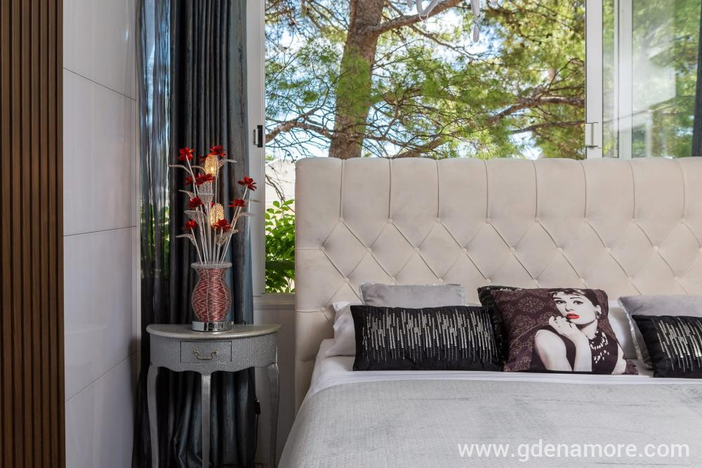 To lepo stanovanje, le 20 metrov stran od plaže je primeren za 4-9 ljudi. (terasa z neposrednim pogledom na plažo) Opis: Spalnica 1: zakonska postelja 210x200, + postelja - 150x200cm, omaro .. Spalnica 2: zakonska postelja 180x200, pograd z dvema postelj 2x100x200cm, garderoba. Dnevna soba, kuhin...