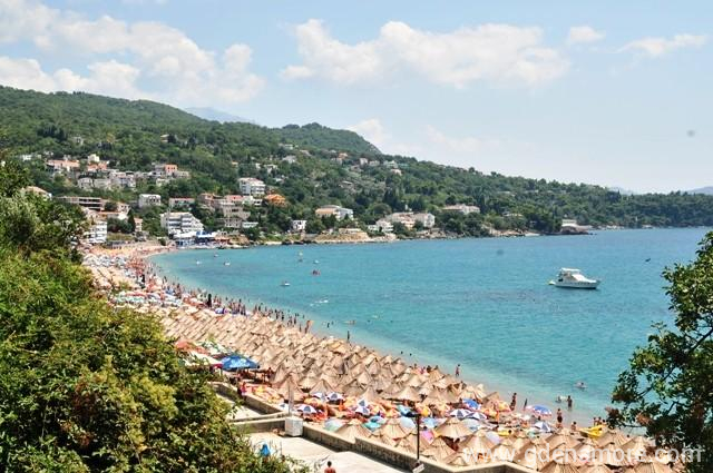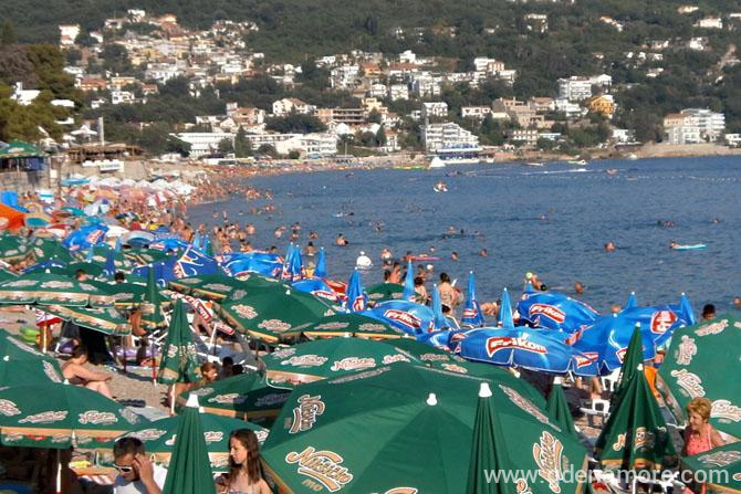 Gradska plaza , ili manje poznata glavna ulica koja ide uz nju Obala Iva Novakovica, je pretezno pescana, prva trecina plaze je sljunkovita, dosta uza od ostatka i po mom ukusu manje interesantna za kupanje. Pretezno je zakupljena , opremljena plaznim mobilijarom , koji uglavnom cine dve lezaljke jedan suncobran i mali stocic. U samom spicu sezone , a pogotovo i vikendom ova plaza ume da bude prepunjena i da se na njoj kupa i vise od 10ak hiljada kupaca. Inace sa sutomorsku obalu kazu da je spok specificnog maestrala vrlo lekovita , vidice poprilican broj ljudi koji u sumrak i u svitanje kad je isparenje joda najvece setaju tik uz vodu ili do clankova gaze po plicaku , sto se preporucuje asmaticarima , a i zdravima kojima kazu da more cuva zdravlje do sledeceg leta :) Sutmore ima jos dve plaze , Maljevik i Strbinu , koje su do skoro bile potpuno divlje a sada se na obe nalazi po jedan kafic i manji koji ima i svoj deo na plazi sa mobilijarom.